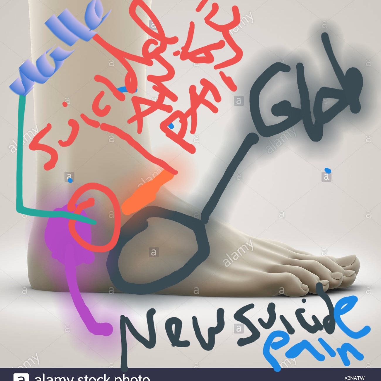 My mother needed bread and she was making some weird dish with broccoli so I wanted pizza. I literally walked around the block, in a square, so technically 4 blocks. I came home tired so took a nap in my underwear because I was too hot. I slept four hours and now my ankle hates me. My heel pain is hurting but no where near last night’s levels. It was completely torture last night. I got PTSD going on which meant I couldn’t lay down because I was scared that I was going to be in more pain. No amount of trying to soothe myself helped. I was so afraid to move my body to lay down and then move my ankle so I could sleep. It was torture and I was up most of the night. I drew a picture of where it hurt. I have no idea why. I made circles around where it hurt and then named them. The glob is the area where there are muscles, bones, tendons, and ligaments. The malleolus which is the ankle bone. Then a new area that was my new suicidal ankle pain spot. I drew a line where the familiar suicidal ankle pain was. That distracted me but didn’t help me to sleep.