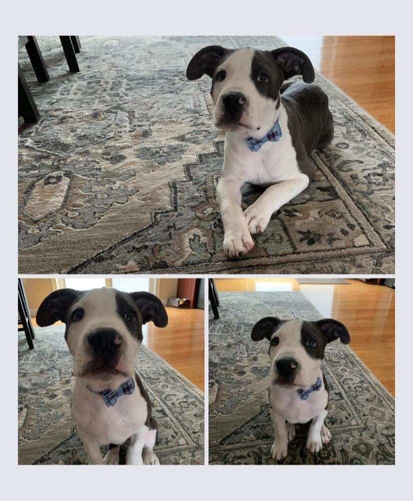 My cousin’s American Bully with a blue bow tie. Too cute not to share