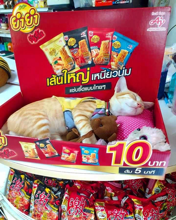 A ginger kitten in a vest hugging a teddy bear while snoozing on a pink pillow