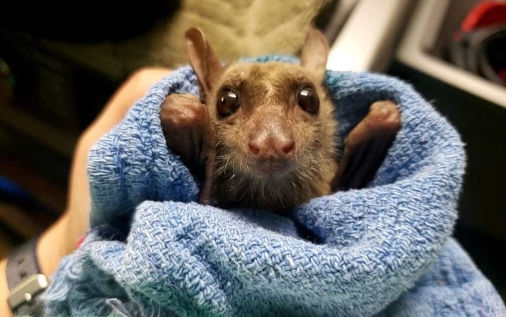 Here is a cute baby bat is in a blanket