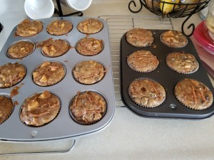 I woke up around 11. I found out the ballgame was at 2 so wanted to make these dreaded muffins. I should have used a food processor to chop in hindsight. I stood for about an hour walking around my kitchen getting things and mixing and stuff. I realized when while I was mixing it the apples I cut up were too big and the carrots were shredded too long. Oh well. It was the first time making this recipe. The muffins would just be chunky. They have apples, carrots, walnuts, coconuts, and raisins. It is a nice hearty muffin. It came out good. Even my mother liked it, and she doesn’t usually like my baking.